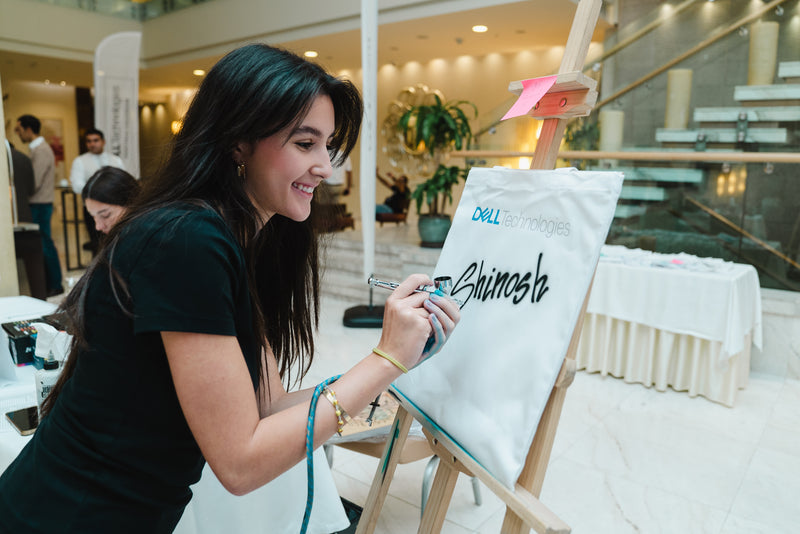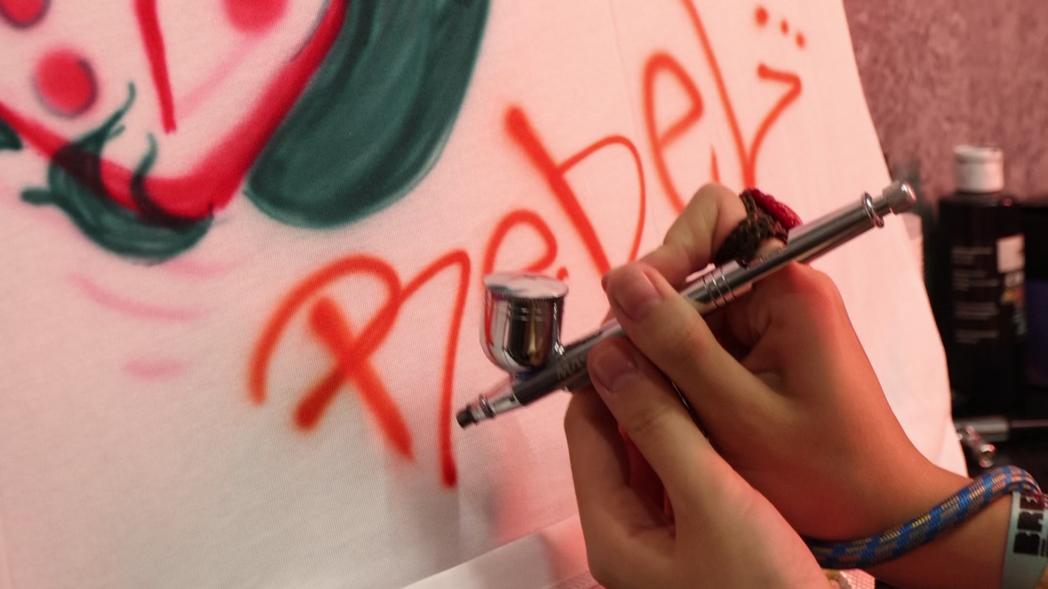 Live Airbrushingfast, vibrant customization for totes, apparel, and merch.